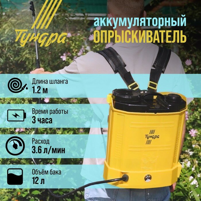 Тундра Опрыскиватель аккумуляторный тундра, 12В, 8 Ач, 12 л, индикатор заряда, 3 насадки интересное: