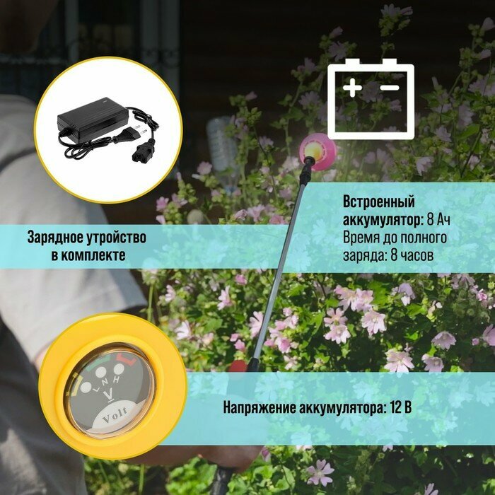 Опрыскиватель аккумуляторный 12В, 8 Ач, 12 л, индикатор заряда, 3 насадки