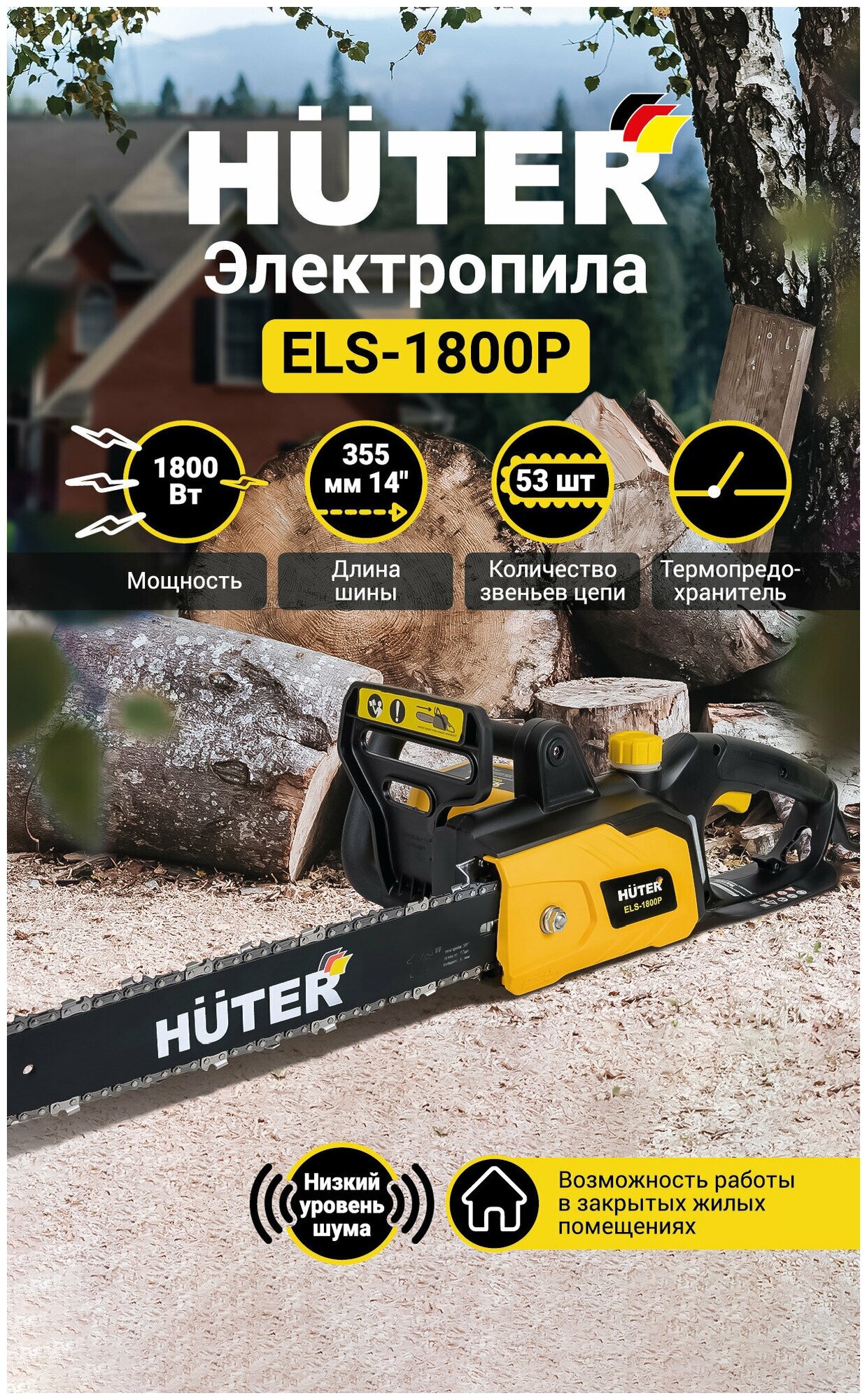 Купить Электропила Huter ELS-2000, длина шины 40 см, 57 звеньев, 2000 Вт, 220 В