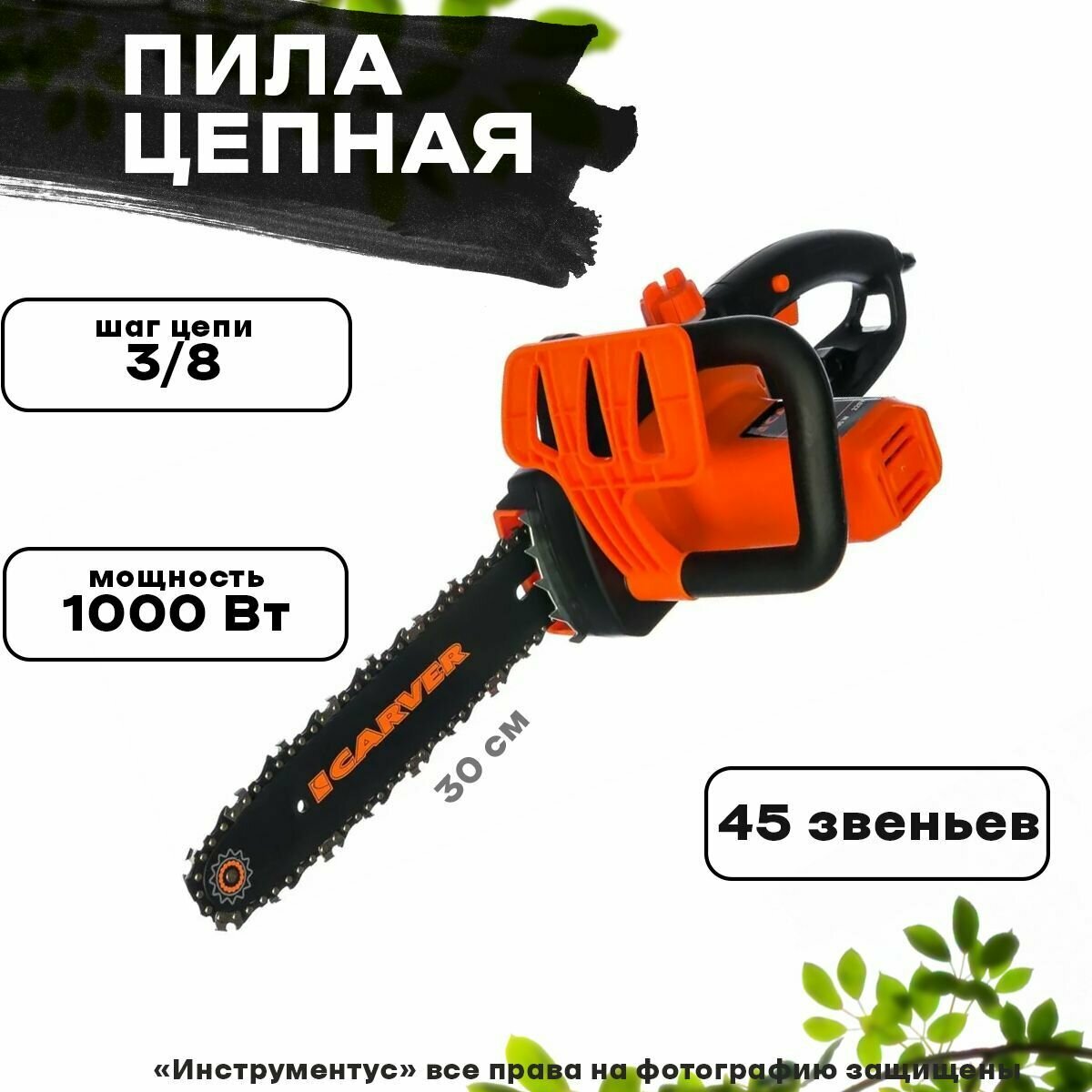 Пила CARVER RSE-1500М, электрическая, 1000 Вт, 30 см (12"), паз 1.3 мм, шаг 9.3 мм Carver