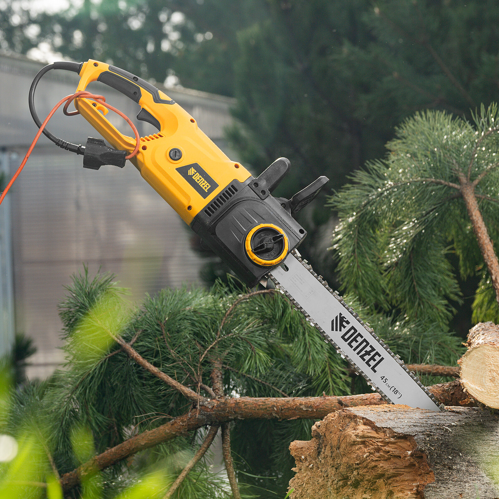 Пила цепная электрическая EDS-2200, 2.2 кВт, продольная, шина 45 см, шаг 3/8, паз 1.3 мм, 62 звена Denzel