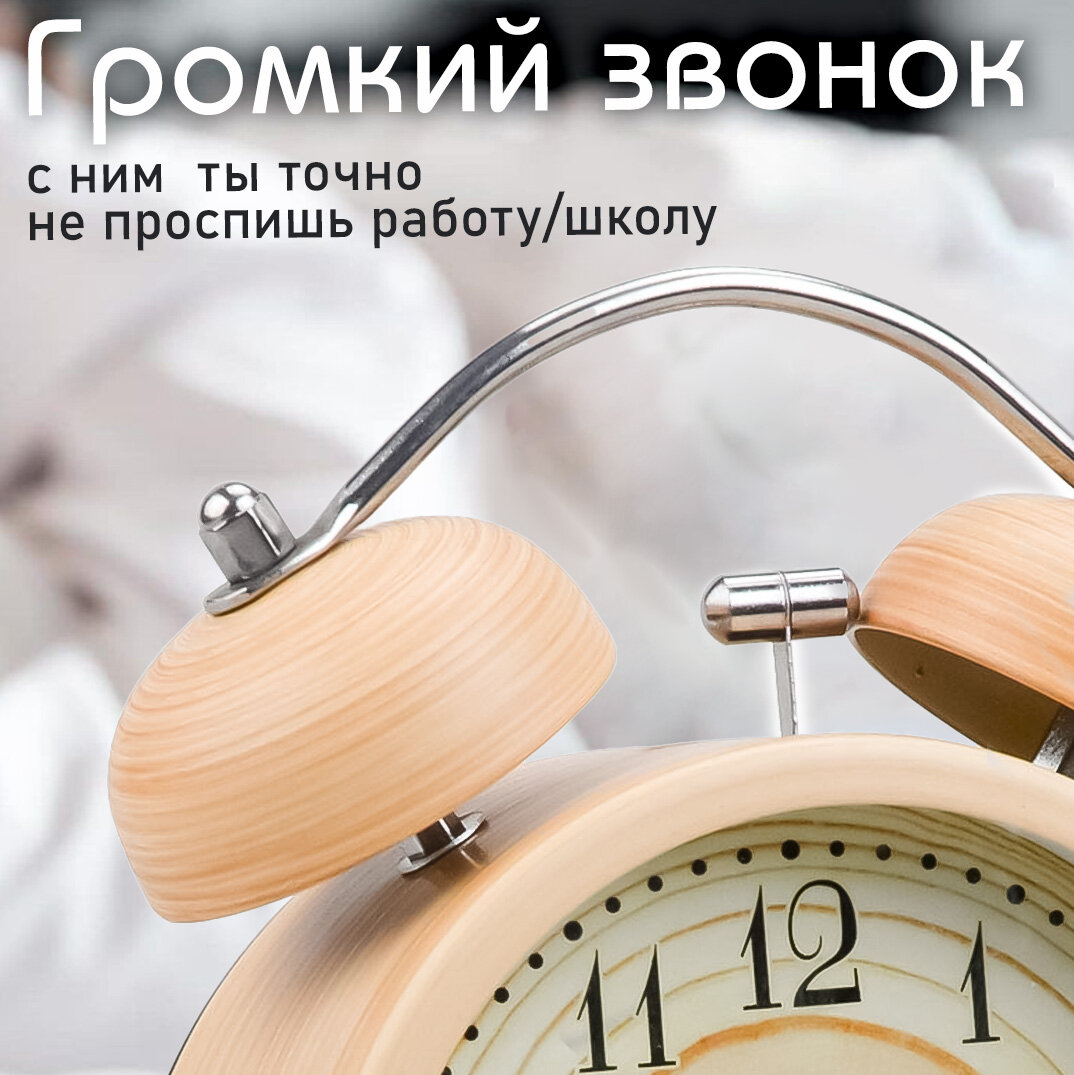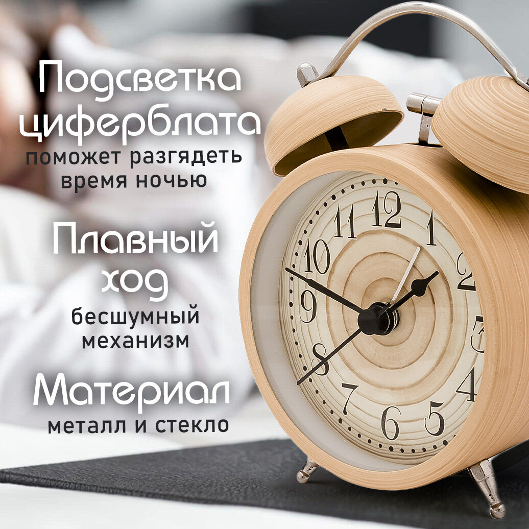Часы будильник настольные классические D-10 см медный цвет Эврика детские, взрослые, подарочные мужские на 23 февраля, женщине на 8 марта, ребенку, на стол, в спальню