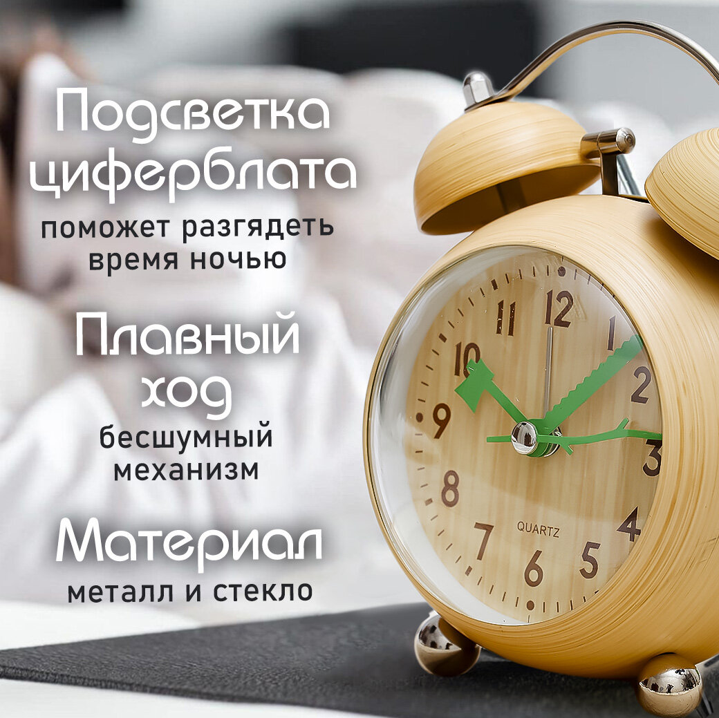 Часы будильник настольные классические D-10 см медный цвет Эврика детские, взрослые, подарочные мужские на 23 февраля, женщине на 8 марта, ребенку, на стол, в спальню