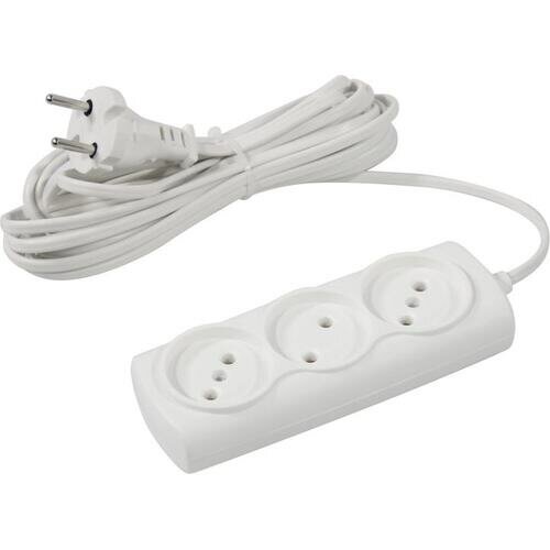 Удлинитель 3 розетки, 5 м, 6 А, 1300 Вт, ШВВП 2х0.5 мм2, без з/к, белый 5350219