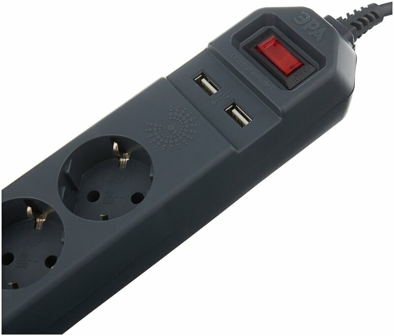 Сетевой фильтр ЭРА USF-6es-5m-B с базовой защитой с заземлением с выключателем 6