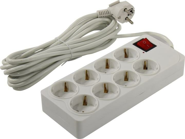 Сетевой фильтр Buro 800SH-5-W 5м, 8 розеток, белый (коробка)