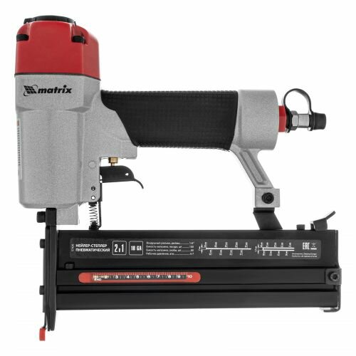 СохранитьПистолет пневматический Matrix 57426, 2 в 1, гвозди 18GA длина 10-50, скобы 18GA длина 13-40 интересное: