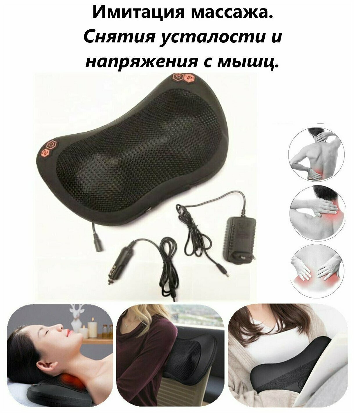 | Комплектация | Массажная подушка, 2 кабеля питания (для авто и обычный) |