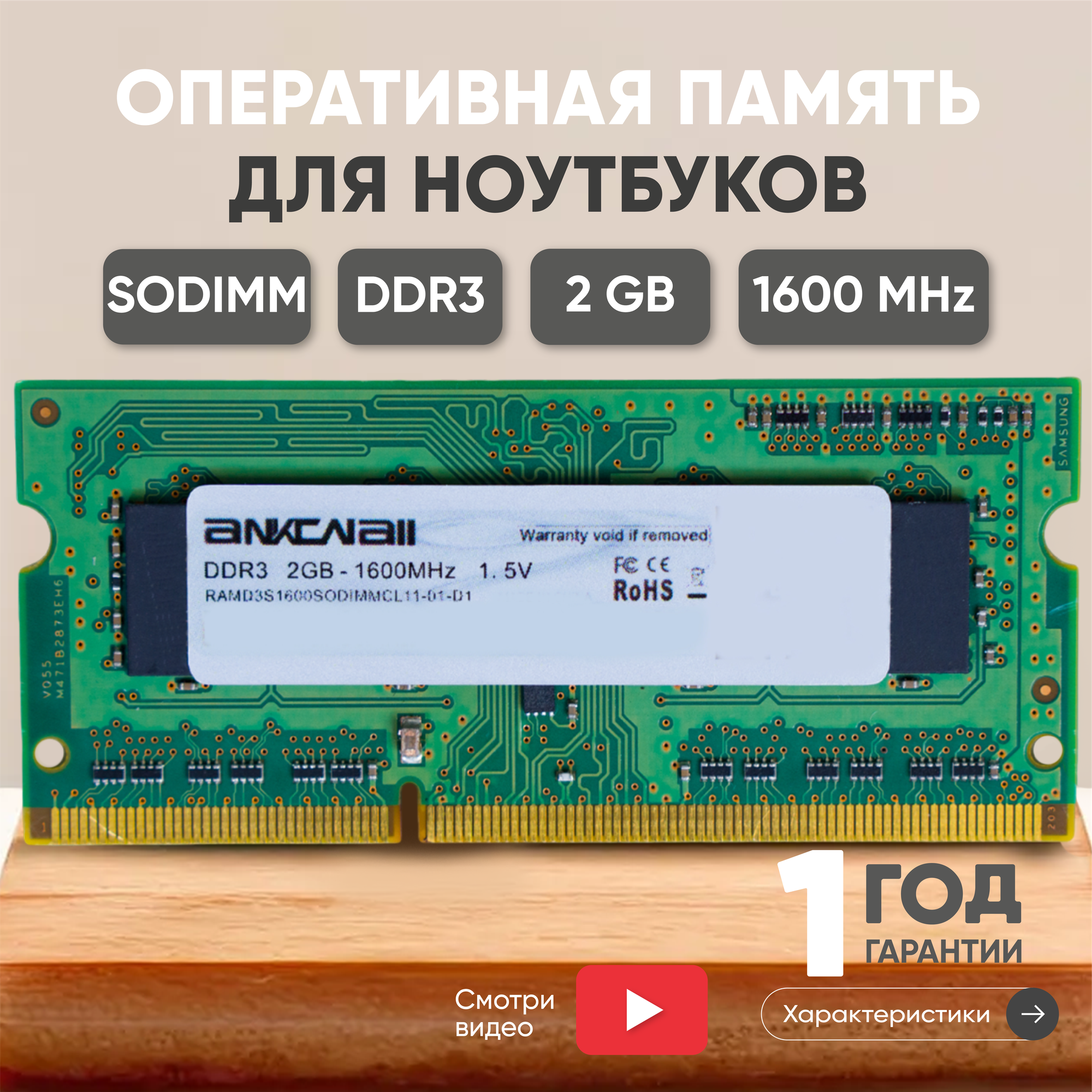 Модуль памяти Ankowall Sodimm DDR3 2GB 1600 MHz PC3-12800 84343 . интересное: