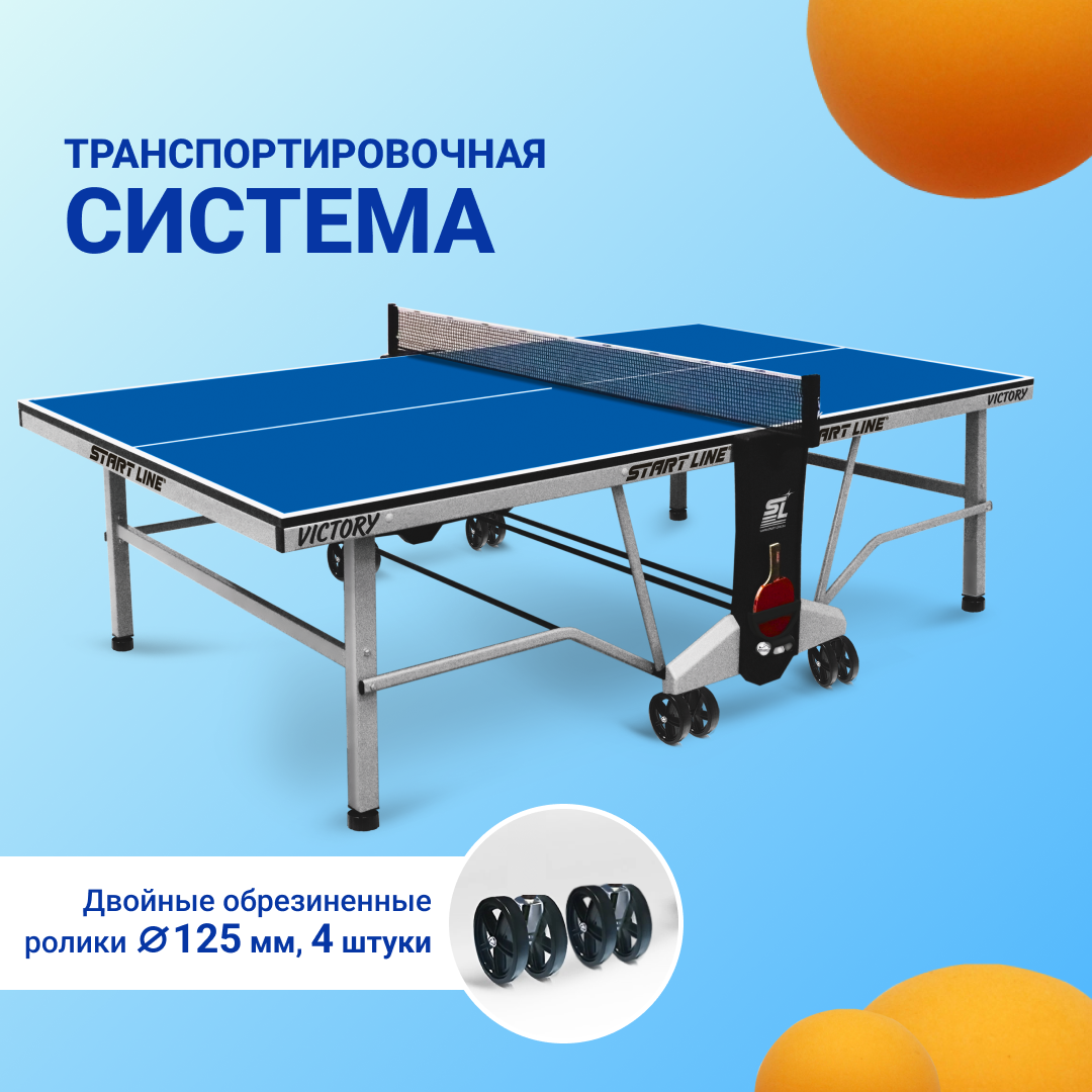 Теннисный стол Start Line Victory blue, профессиональный, для помещений, для дома, с сеткой и колесами