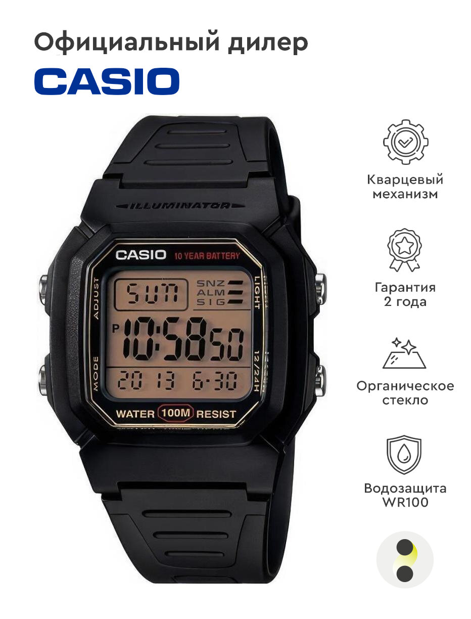 Наручные часы CASIO Collection Men W-800HG-9A кварцевые, будильник, секундомер, подсветка дисплея, водонепроницаемые, черный
