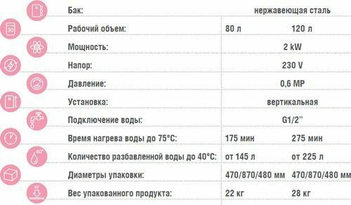 | Объем бака | 80 л |