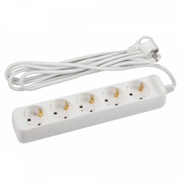 Удлинитель электрический ЭРА U-5e-5m-3x1,5 с заземлением 5 розеток 16А 5м белый Б0044039