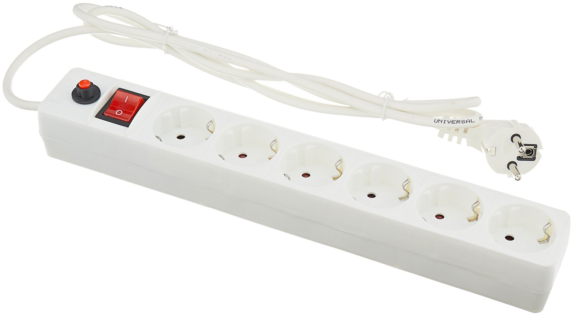 Купить Удлинитель, сетевой фильтр (пилот) 6 мест, 1.8 м, UNIVersal, ПВС 3х0.75, белый, с предохранителем