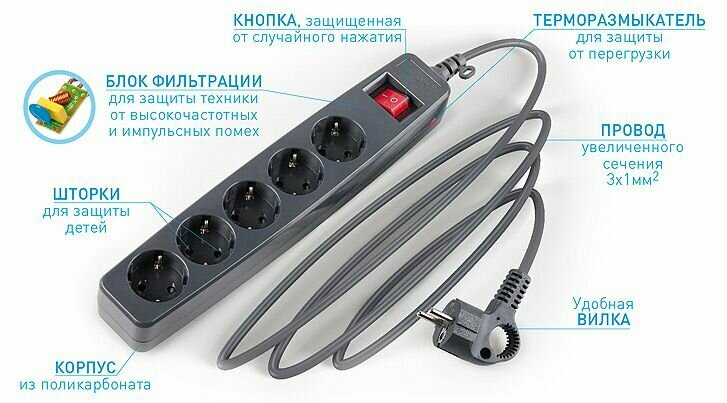 | Плюсы: | Удобная длина 4 метра ,5 гнезд российское качество ,пока не подвела :) С системой защиты от помех и замыканий .С функцией справляется на отлично ,рекомендую ! |