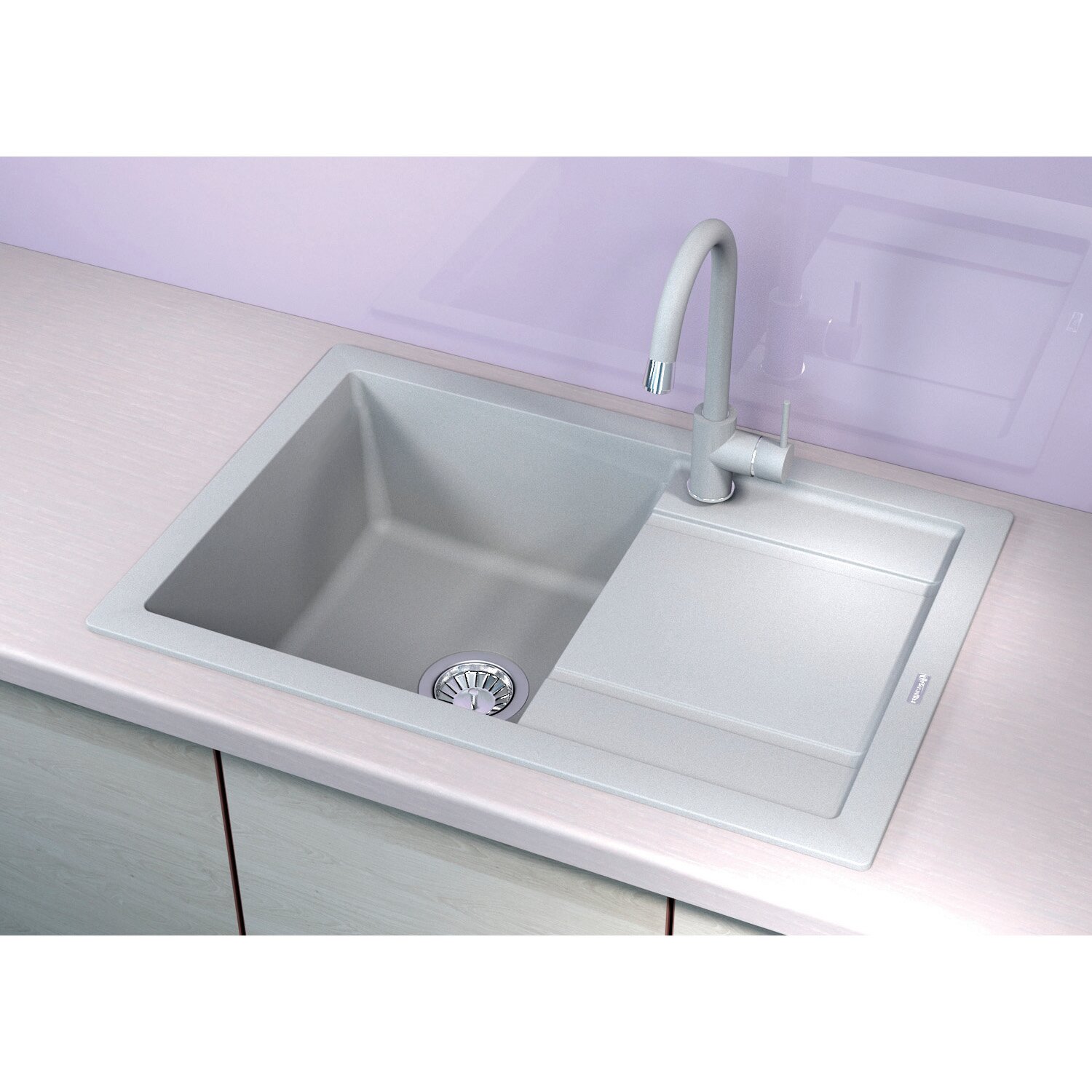 Мойка для кухни врезная каменная Florentina ЛИПСИ-760, цвет серый шелк, с крылом, прямоугольная, 760х510х217 мм