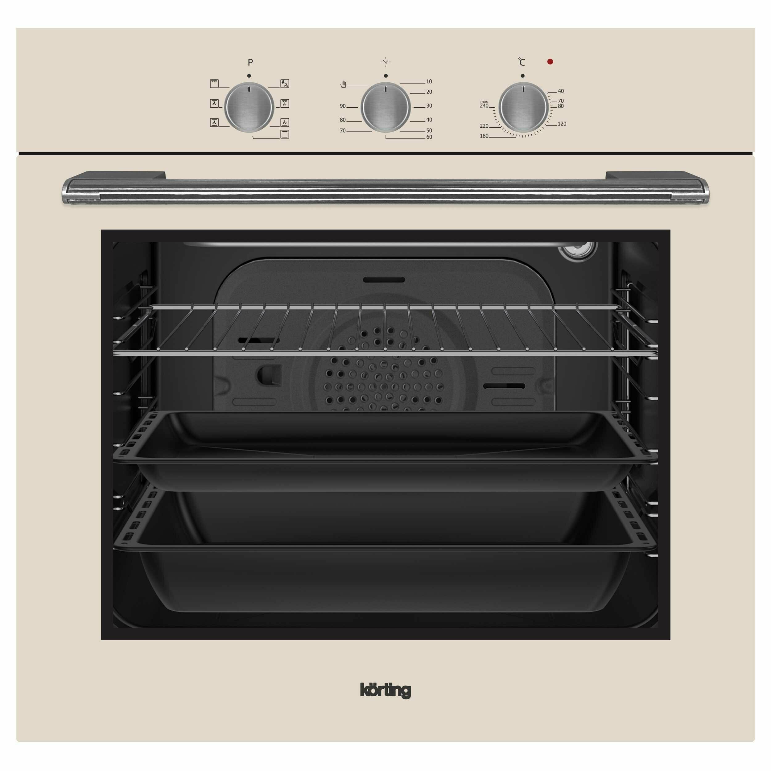 Встраиваемая электрическая духовка Korting 7 режимов, Утапливаемые поворотные регуляторы, Каталитическая очистка, бежевое сткло