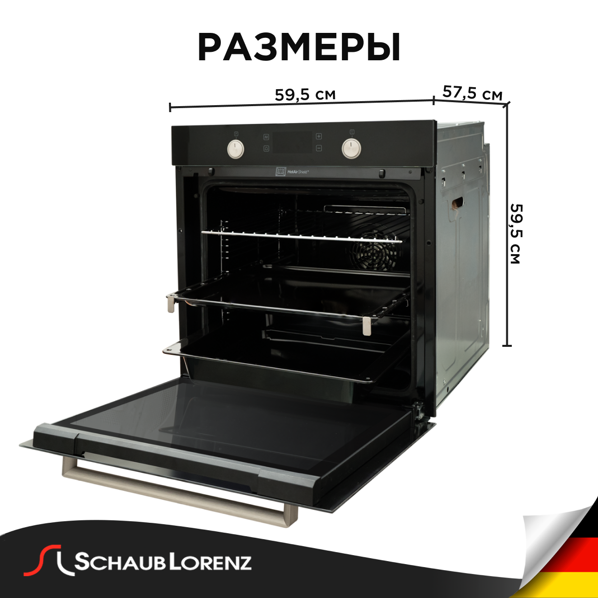 Купить Электрический духовой шкаф встраиваемый Schaub Lorenz SLB EY6943, 78л,черное стекло, гриль, конвекция, пицца, размораживание