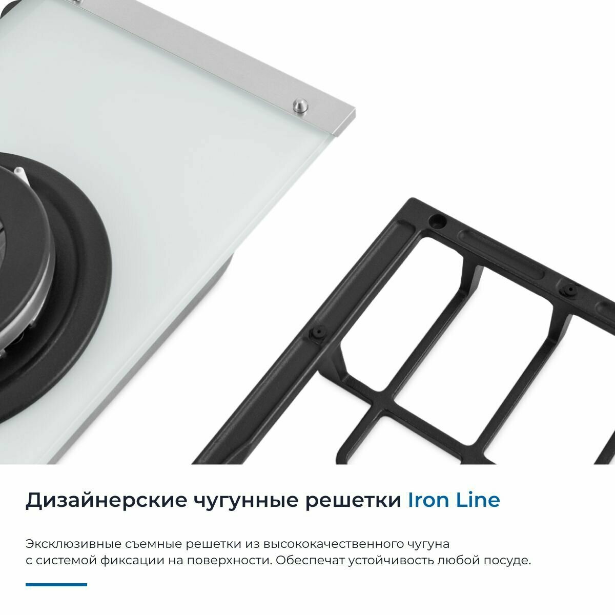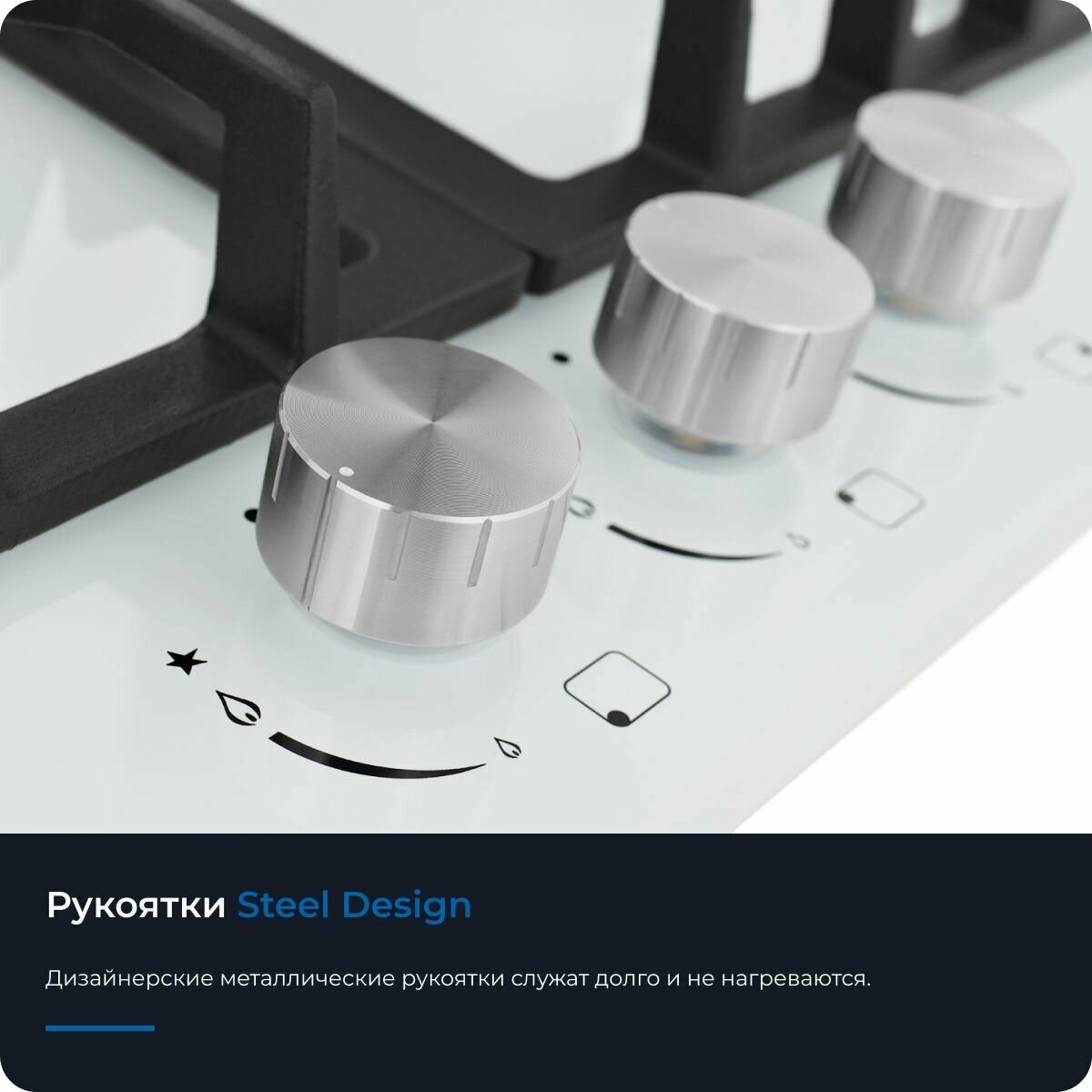 Газовая варочная панель ZUGEL ZGH451W, газ-контроль, WOK-конфорка, 45 см, автоматический электроподжиг, трехконтурная конфорка, белый