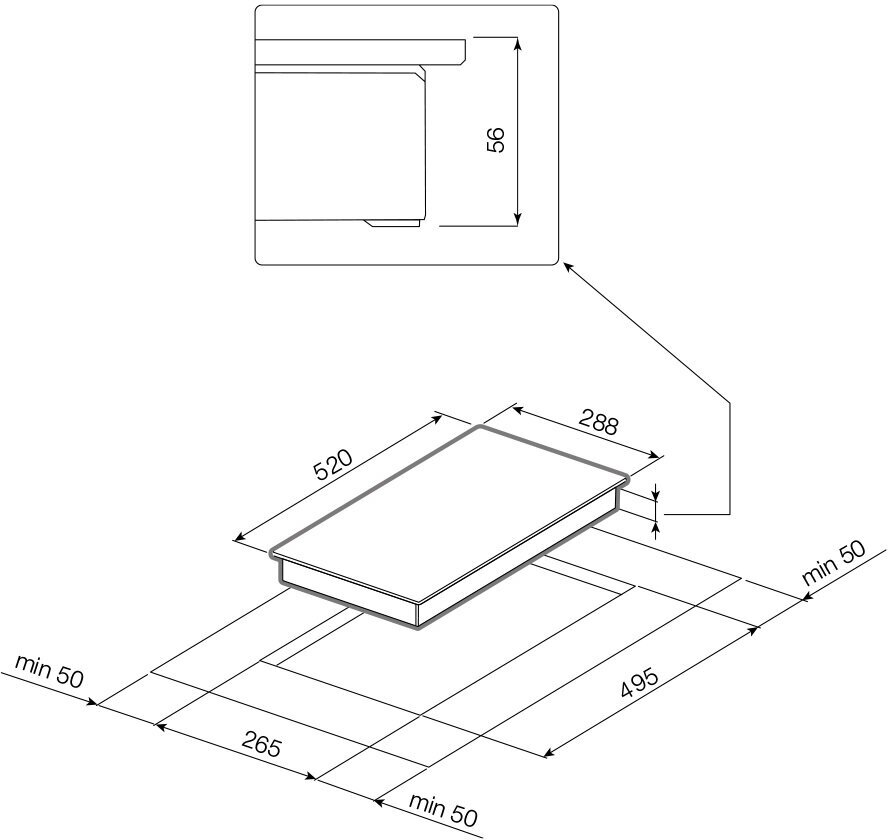 Встраиваемые индукционные панели Graude/ 288 х 56 х 520 мм, индукционная варочная панель Premium, се .