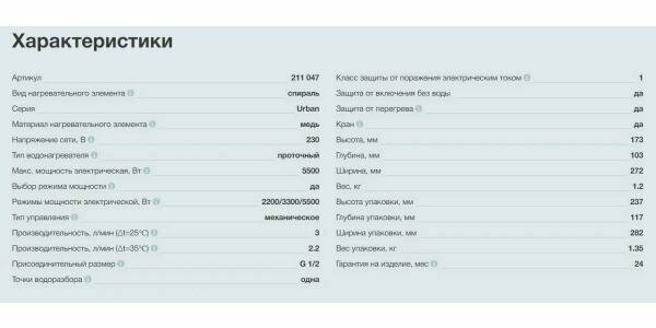 | Подробная комплектация | водонагреватель, руководство по эксплуатации, излив, упаковка, монтажный набор |