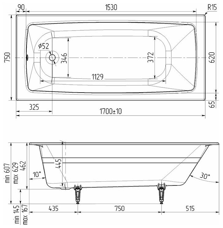 Ванна Wotte Vector 1700x750x445мм чугунная (БП-э00д1472)