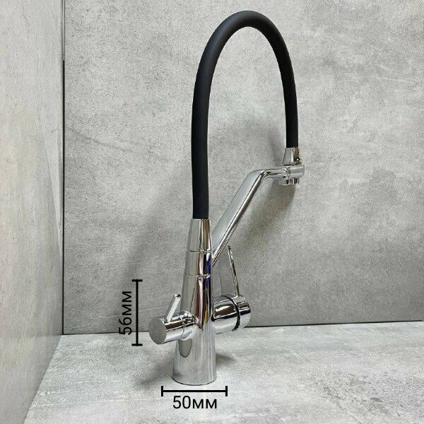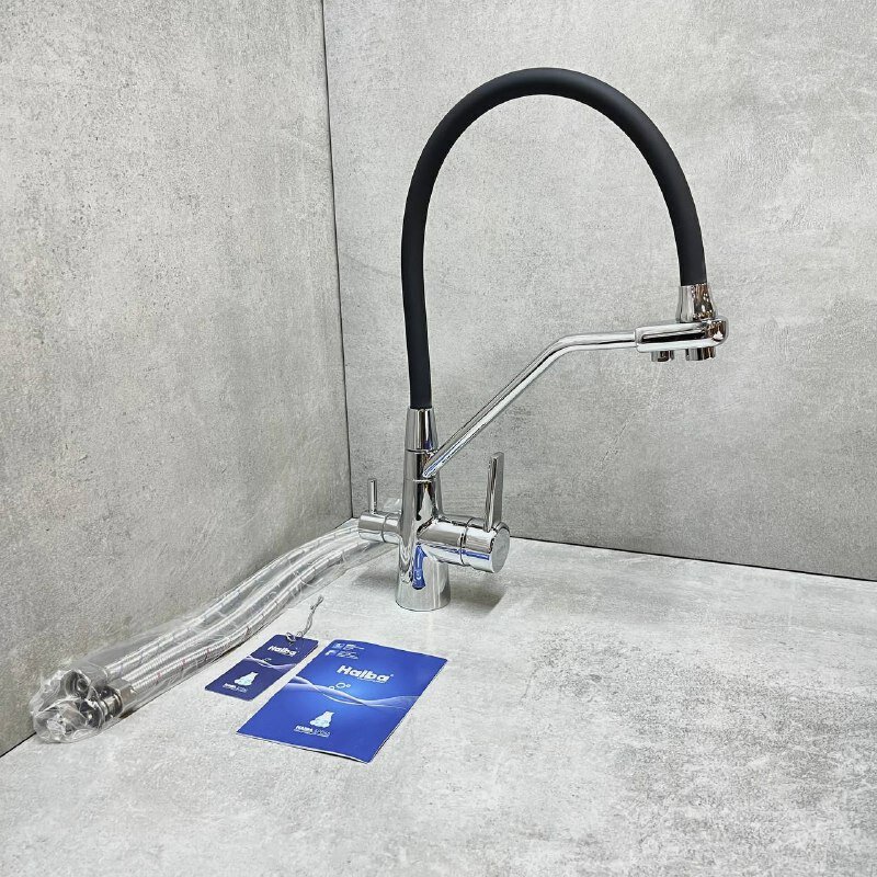 Смеситель для кухни Haiba с гибким силиконовым изливом и с подключением фильтра питьевой воды, черный