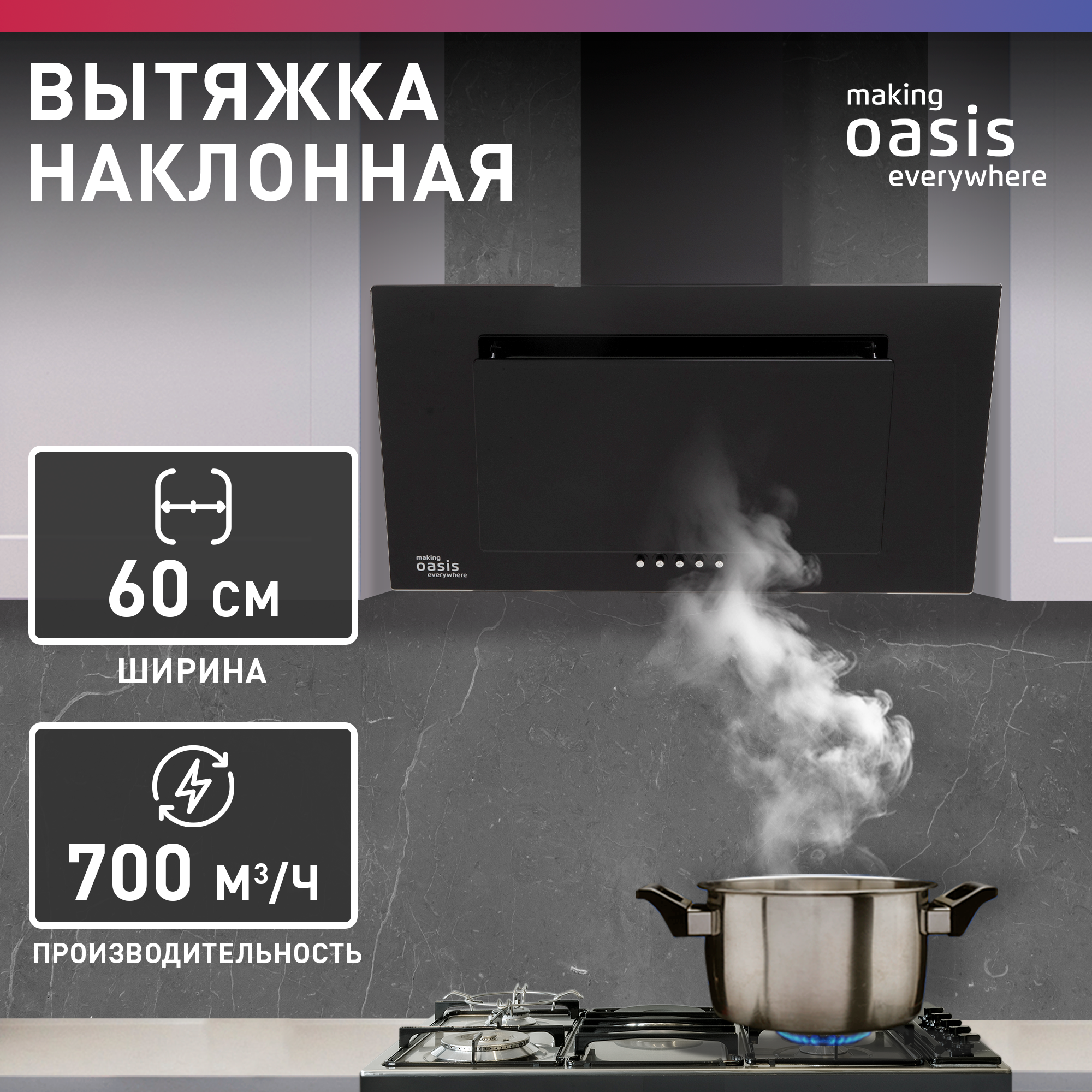 Вытяжка каминная наклонная making OASIS everywhere ND-60B черный (700 м³/ч)
