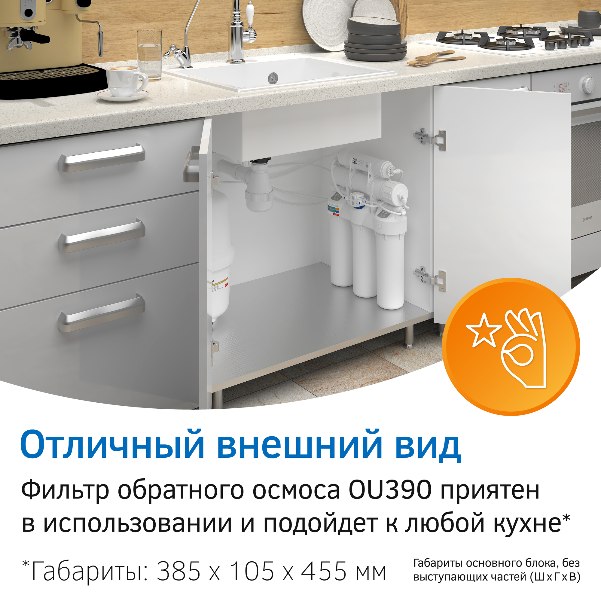 Фильтр с обратным осмосом и минерализатором Prio OU390, 6 ступеней, Slim Line 10"