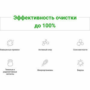 | Функции очистки | механическая фильтрация / минерализация / обезжелезивание / обратный осмос / очистка от бактерий / очистка от свободного хлора / угольная фильтрация |