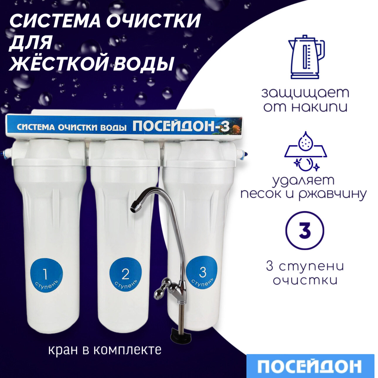 Фильтр под мойкой посейдон "ПОСЕЙДОН-3" для жёсткой воды