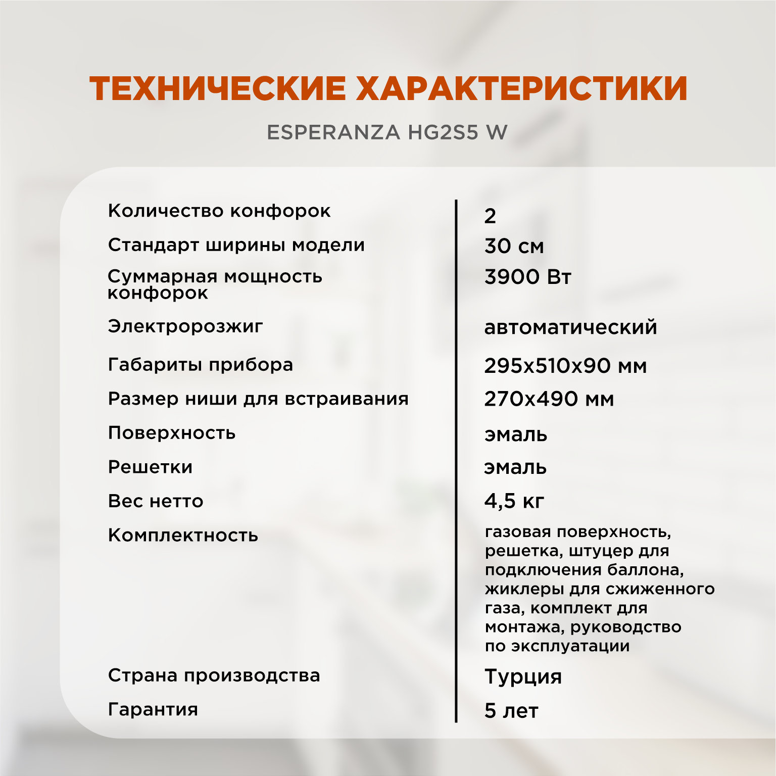 Варочная поверхность газовая ESPERANZA HG2S5 W интересное: