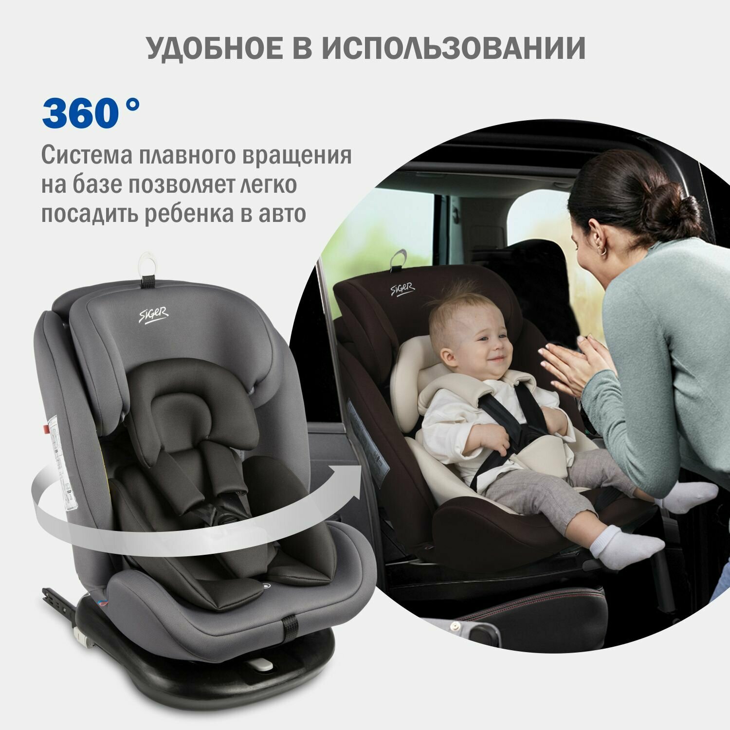 Автокресло детское поворотное с рождения до 12 лет / Isofix / 0+/1/2/3/до 36 кг 0-36кг / 0-12лет, Siger Престиж , маренго
