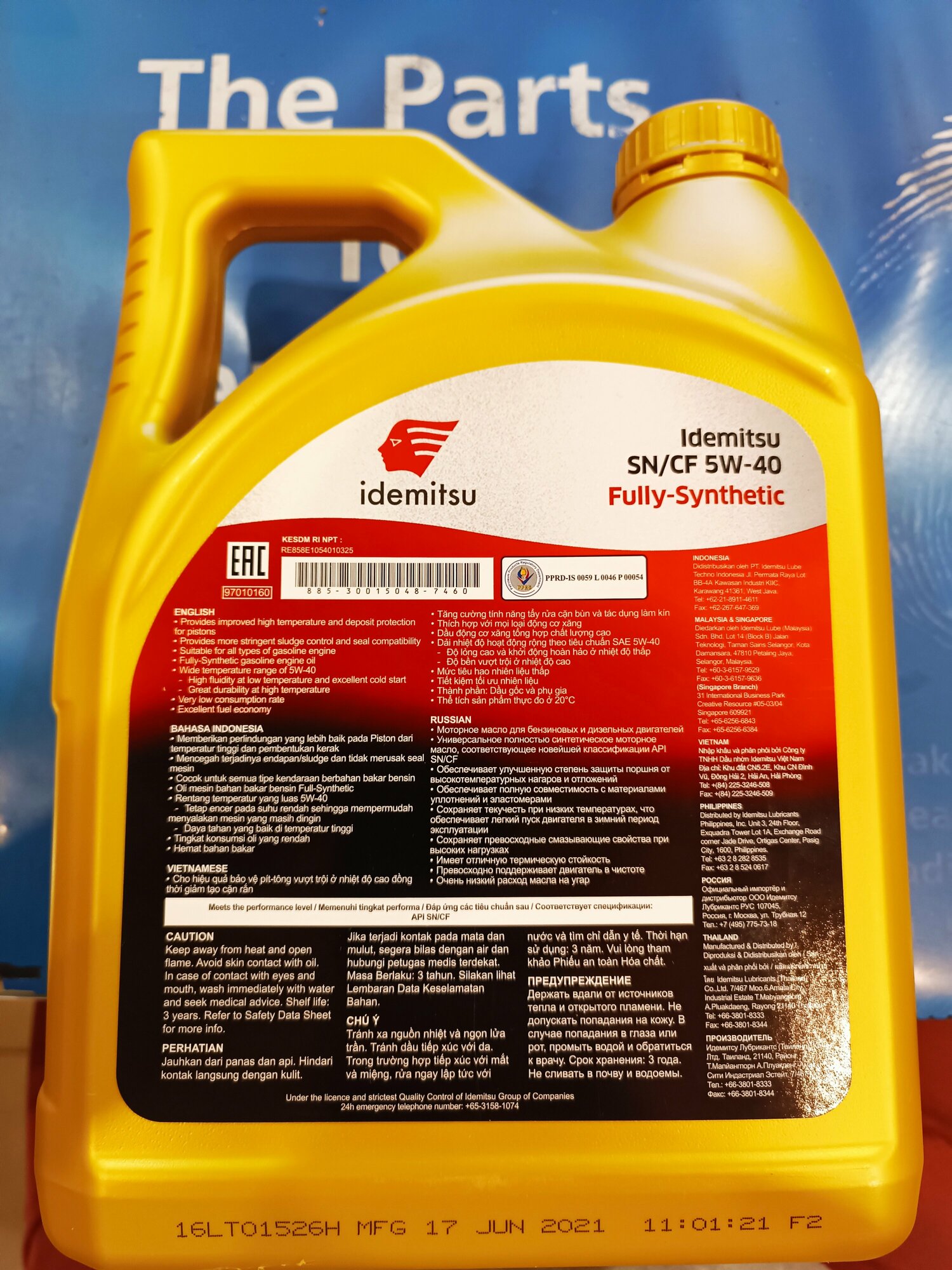 Купить IDEMITSU 300150467460 Масло моторное IDEMITSU SN CF 5W40I 4L F-S не забудьте про масляный фильтр