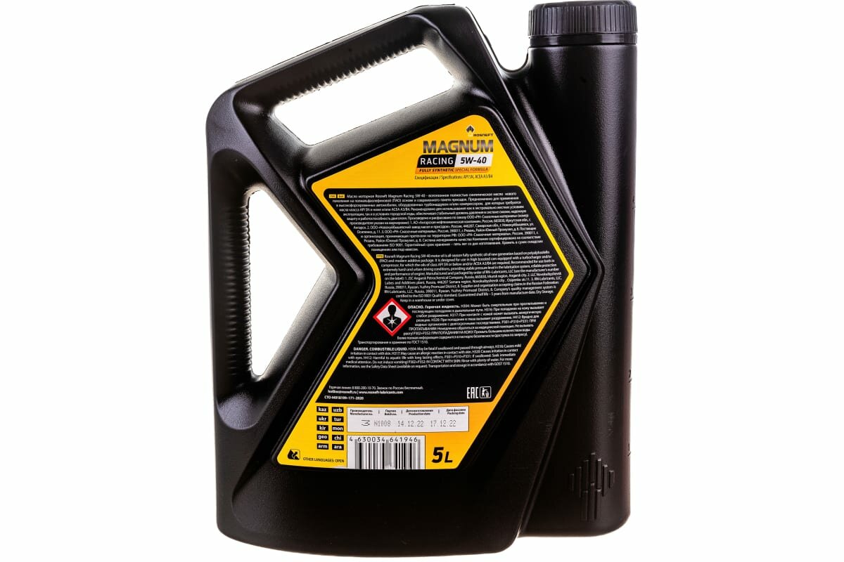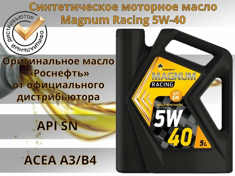 Синтетическое моторное масло Роснефть Magnum Racing 5W-40, 5 л, 4.6 кг, 1 шт
