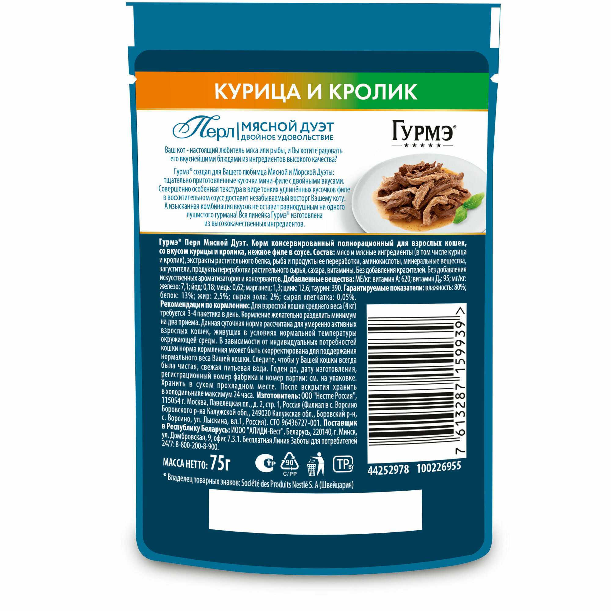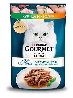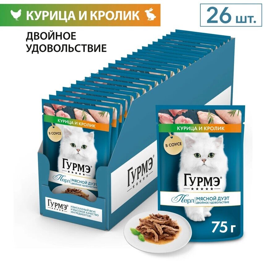 Гурмэ Перл Мясной Дуэт полнорационный влажный корм для кошек, с кроликом и курицей, кусочки в соусе, в паучах - 75 г х 26 шт интересное: