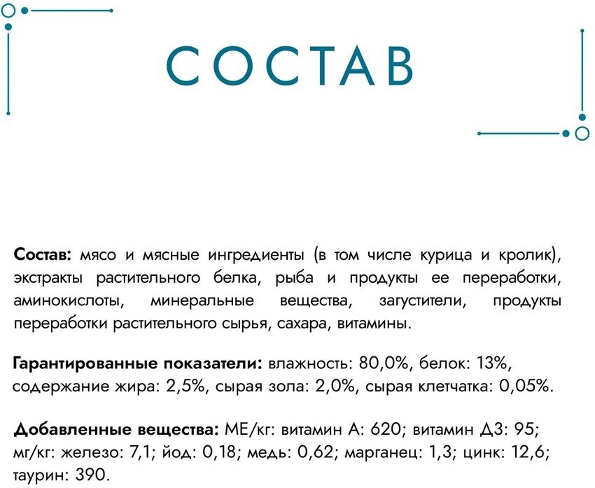 | Вкус | кролик / курица |