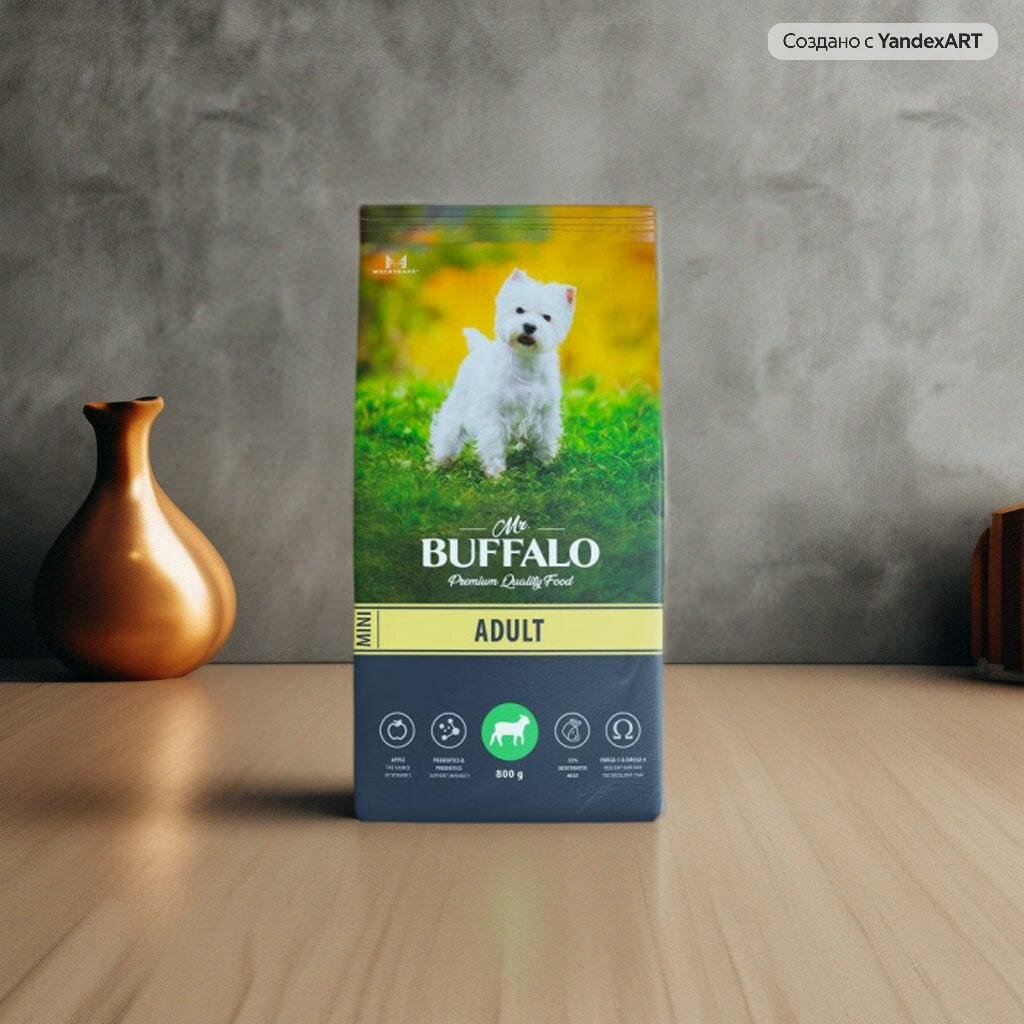 Mr.Buffalo Adult Mini (Баффало) 800г х 2шт с ягненком сухой корм для собак мини пород