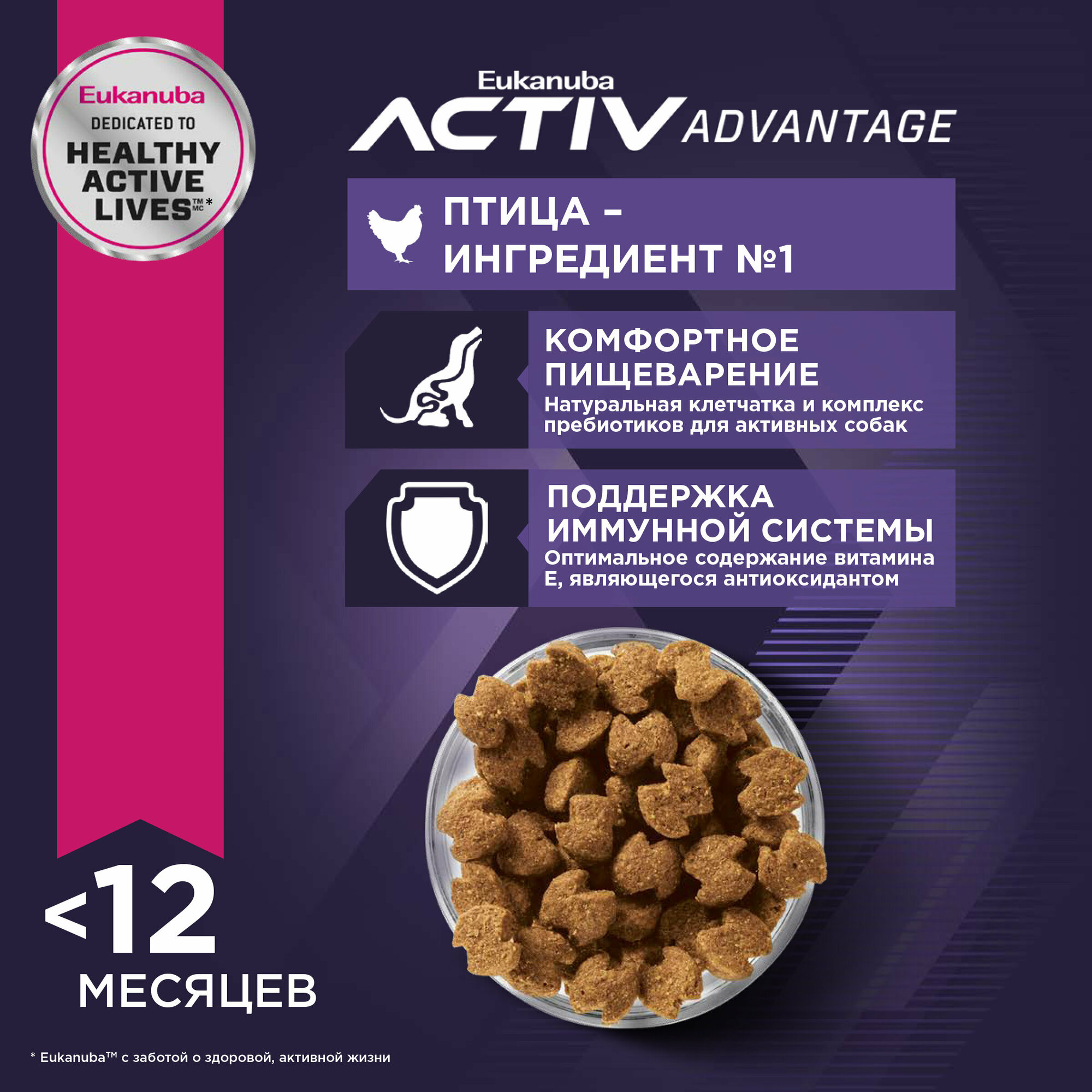 Корм для собак сухой Эукануба Puppy Medium Breed для щенков средних пород от 1 до 12 месяцев, гранулы с птицей 800г / сбалансированное питание