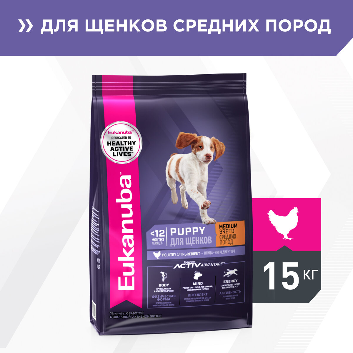 Корм сухой Eukanuba Puppy Medium Breed для щенков средних пород с курицей, 15 кг