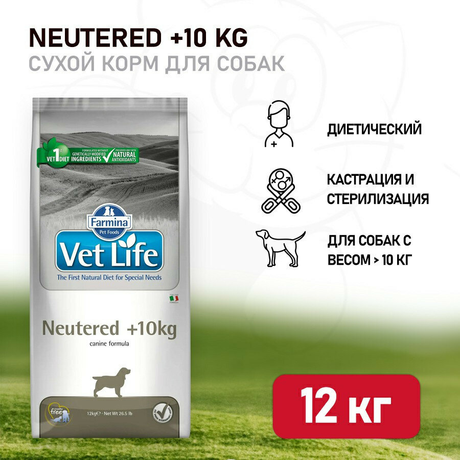 Сухой корм Farmina Vet Life Neutered +10kg для взрослых кастрированных или стерилизованных собак весом более 10 кг, диетический, 12 кг