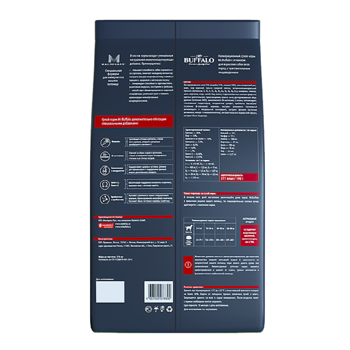 Mr.Buffalo корм для взрослых собак средних и крупных пород, чувствительное пищеварение, ягненок 14 кг