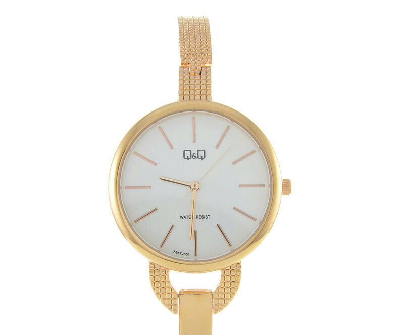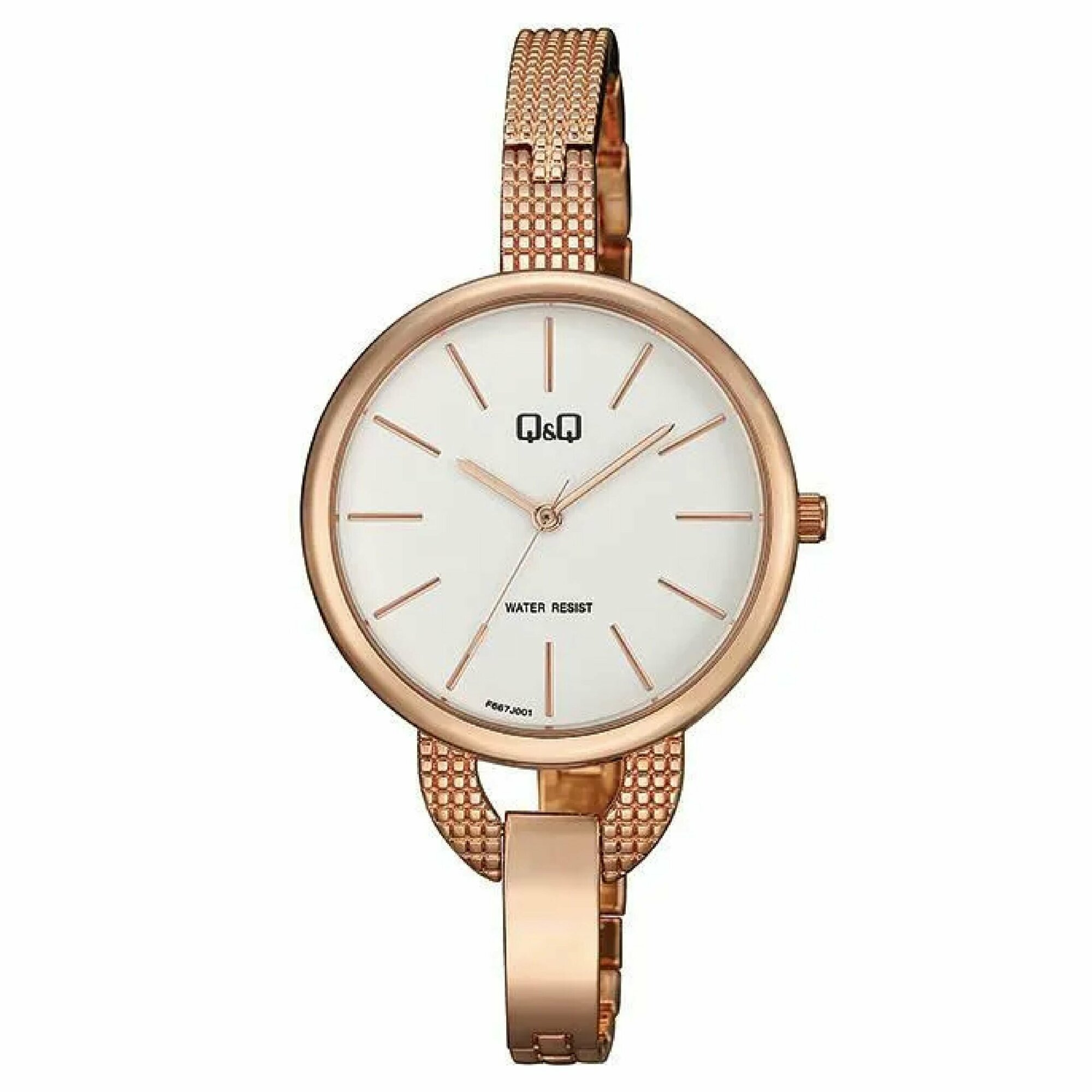 Q&Q F667-001 женские японские наручные часы на изящном стальном браслете