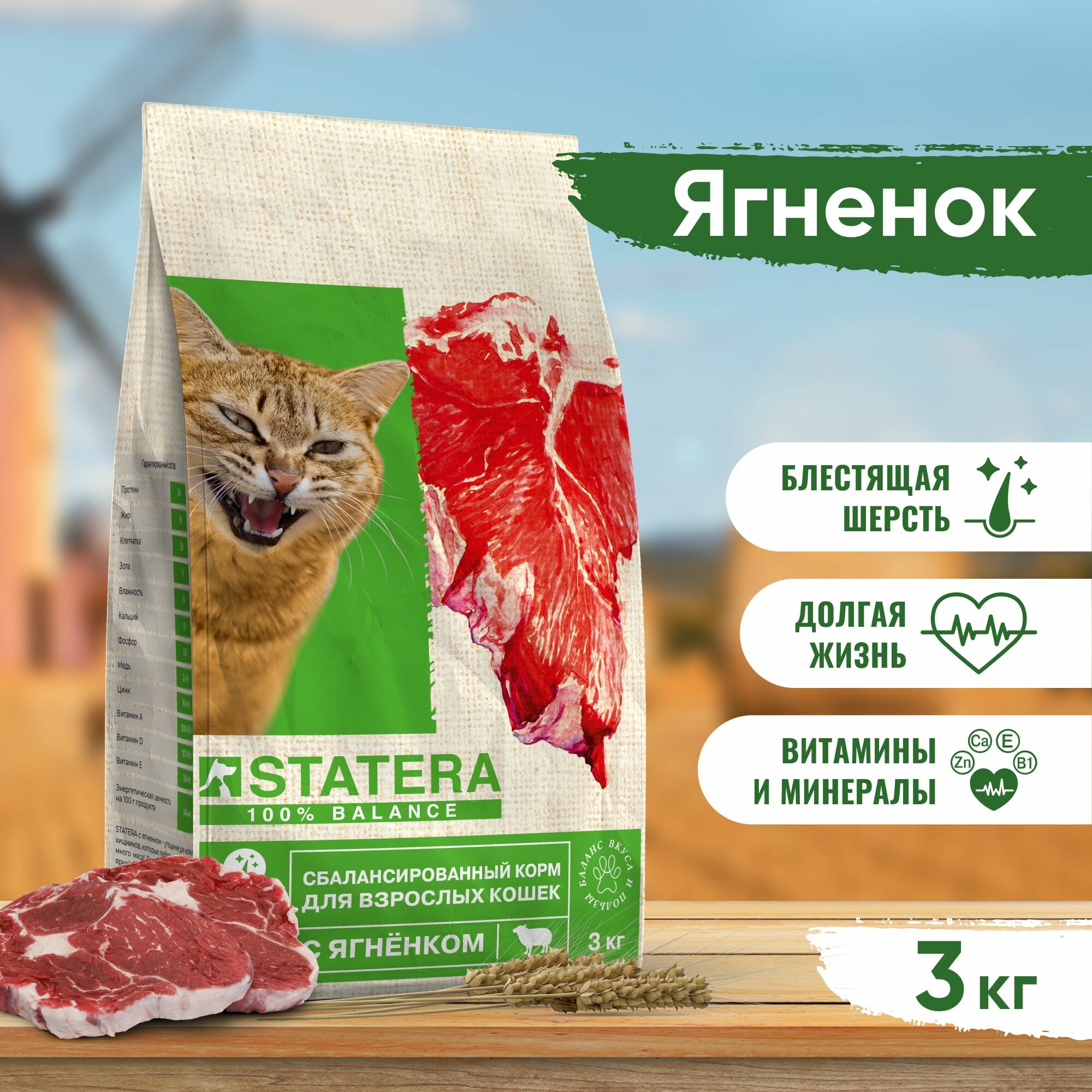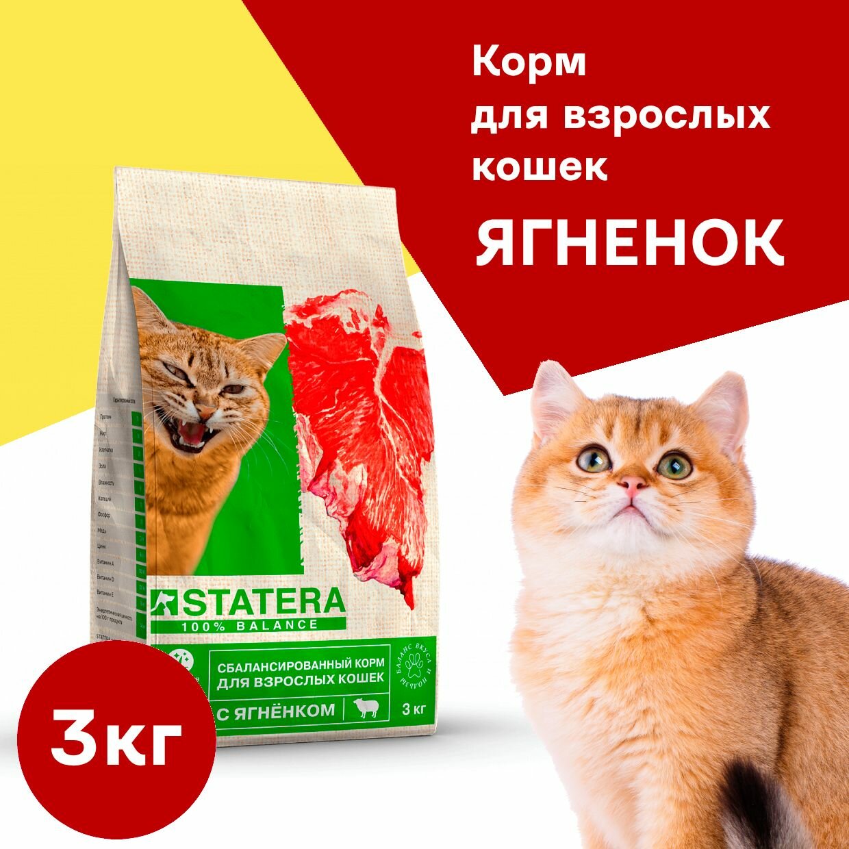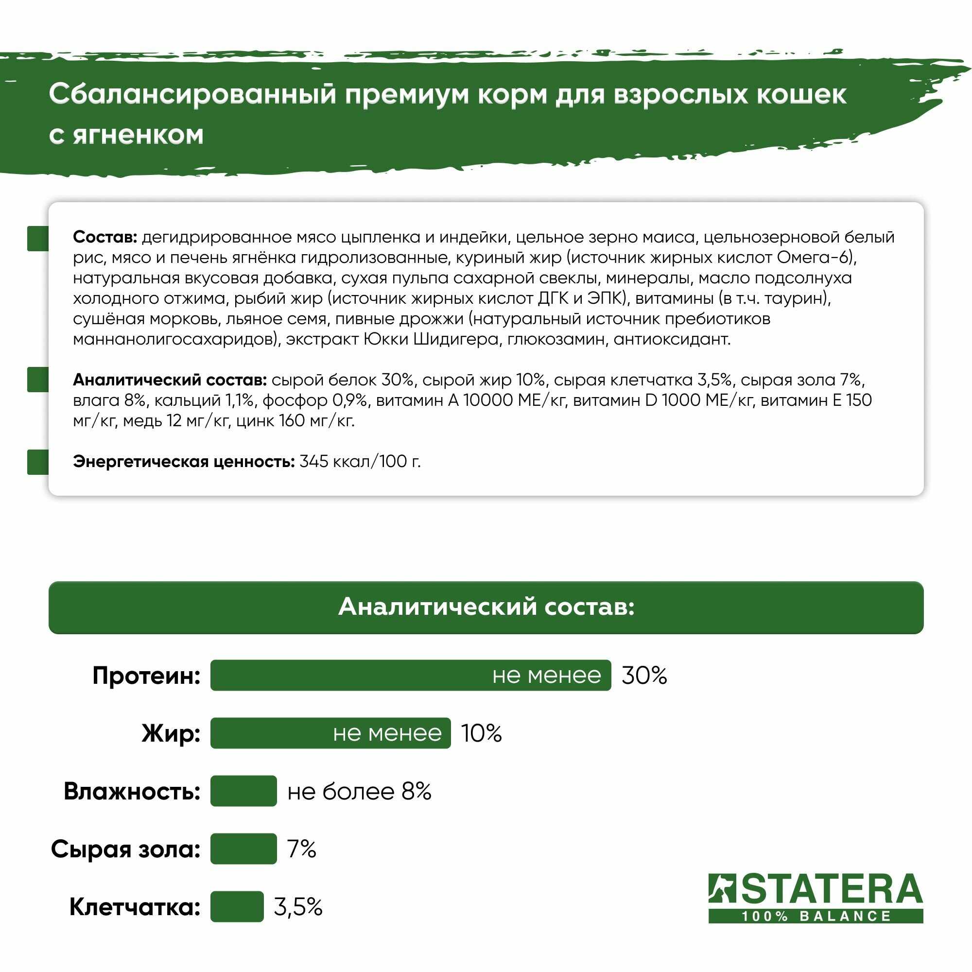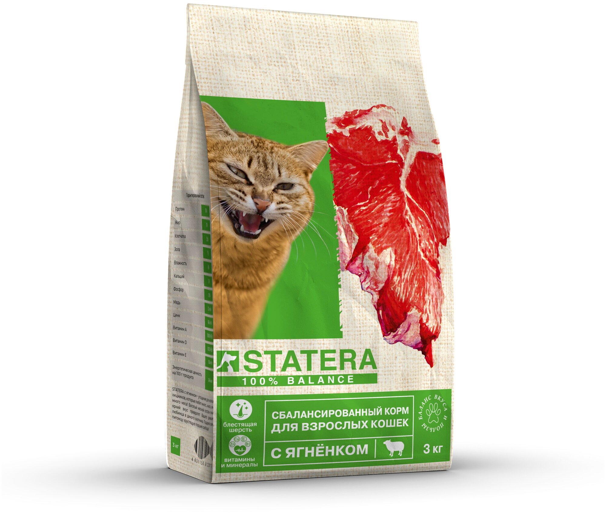 Statera - Сухой сбалансированный корм для взрослых кошек, с Ягненком (3 кг)