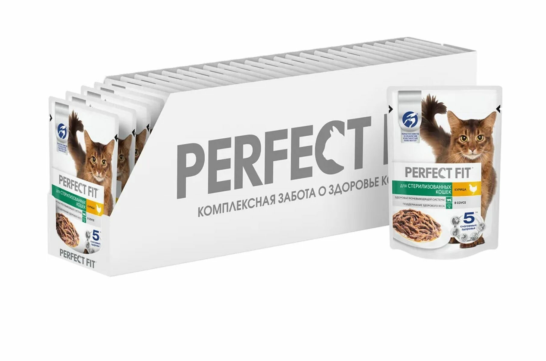 Влажный корм Perfect Fit для стерилизованных кошек, с курицей в соусе, 75гр x 28 шт