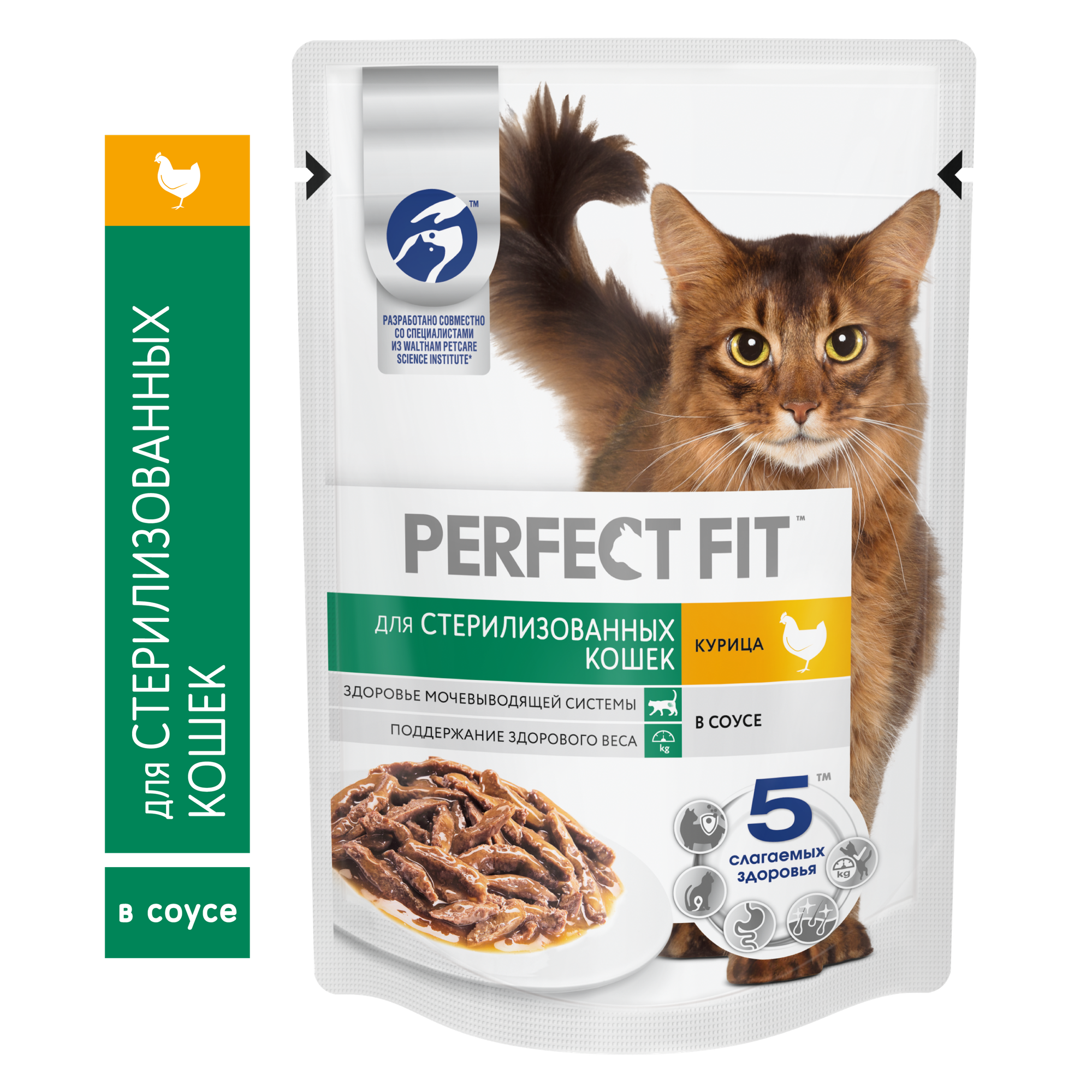 Влажный корм Perfect Fit для стерилизованных кошек, курица, пауч, 75 г