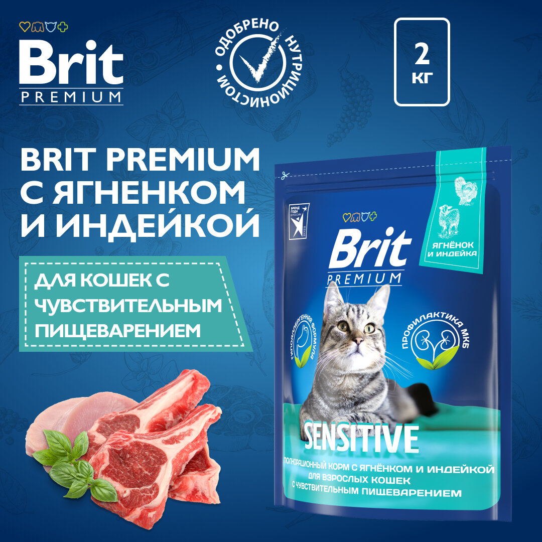Корм Brit Premium Cat Sensitive для взрослых кошек с чувствительным пищеварением, с ягненком и индейкой 2 кг