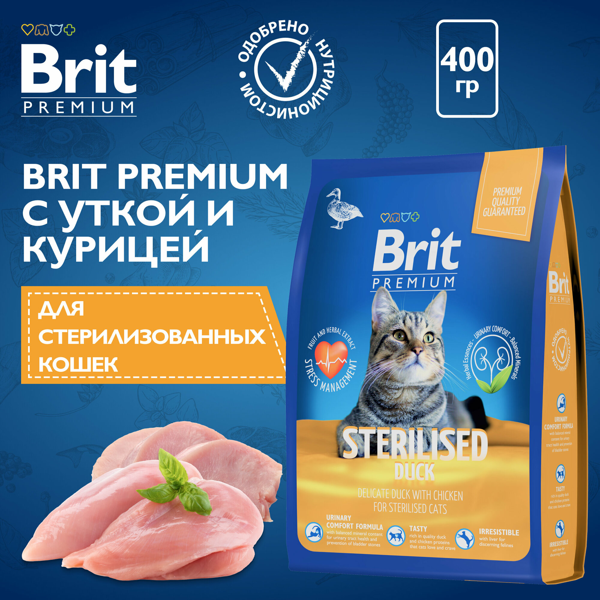 Brit Сухой корм премиум класса с уткой и курицей для взрослых стерилизованных кошек 400г 0.4 кг