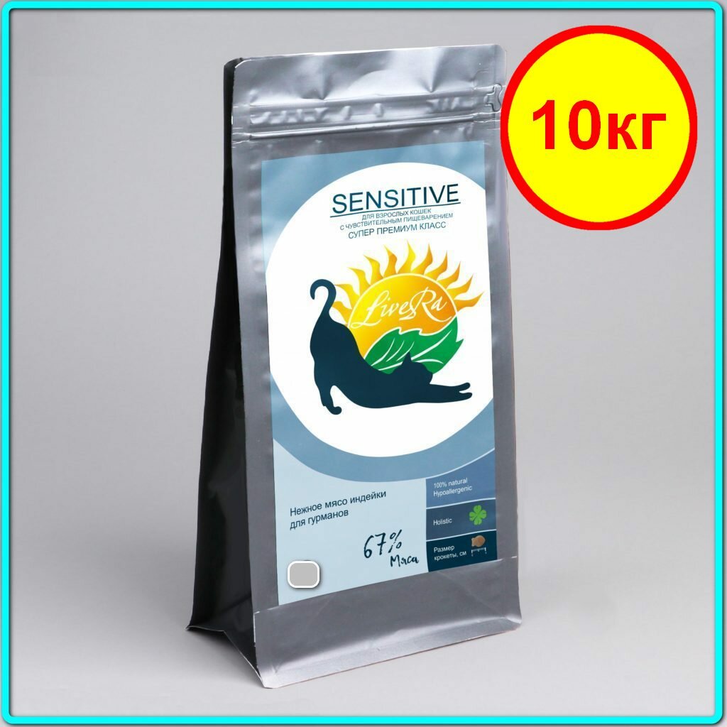 LiveRA 10 кг корм сухой для кошек Sensitive с чувствительным пищеварением индейка с рисом