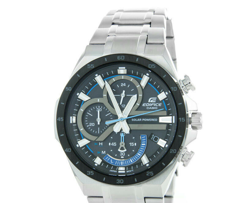 Японские кварцевые часы с солнечной подзарядкой Casio Edifice EQS-920DB-1B на стальном браслете, с водозащитой 10 бар и международной гарантией от производителя